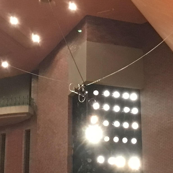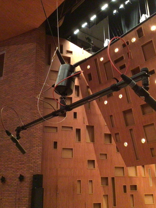 高感度マイクでの収録は、天井から吊り下げるホール設備を使用します。